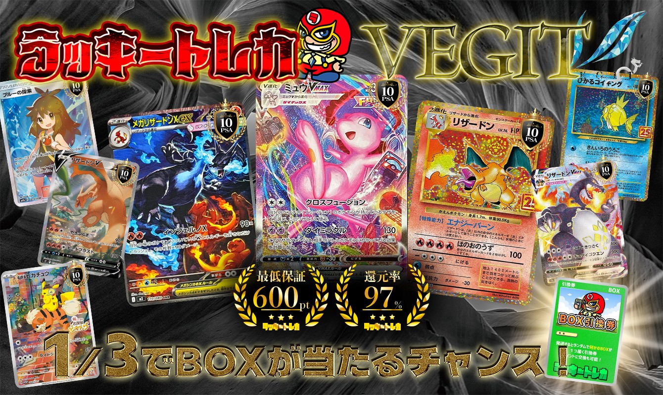 サイトリニューアルのお知らせ 日々ラッキートレカをお楽しみの皆様へ朗報です! この度、ラッキートレカは ・サイトフルリニューアル ・サーバーの強化 ・広告の開始 ・スタッフ増員 等々を経て新体制へとリニューアルいたしました! 今後も業界No.1実質還元率を維持しつつ、皆様にトレカを通して刺激的かつ最高の体験をしていただくために 運営一同、より一層気を引き締めて盛り上げていきますので、今後ともラッキートレカオンラインをよろしくお願いいたします!
